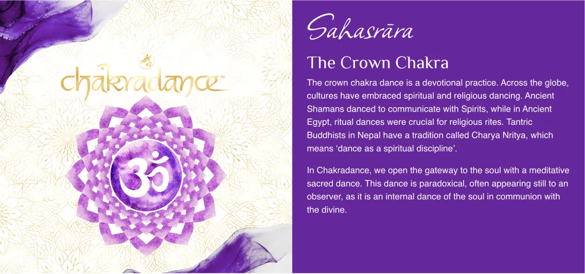 The crown chakra dance is a devotional practice. Across the globe, cultures have embraced spiritual and religious dancing. Ancient Shamans danced to communicate with Spirits, while in Ancient Egypt, ritual dances were crucial for religious rites. Tantric Buddhists in Nepal have a tradition called Charya Nritya, which means ‘dance as a spiritual discipline’.